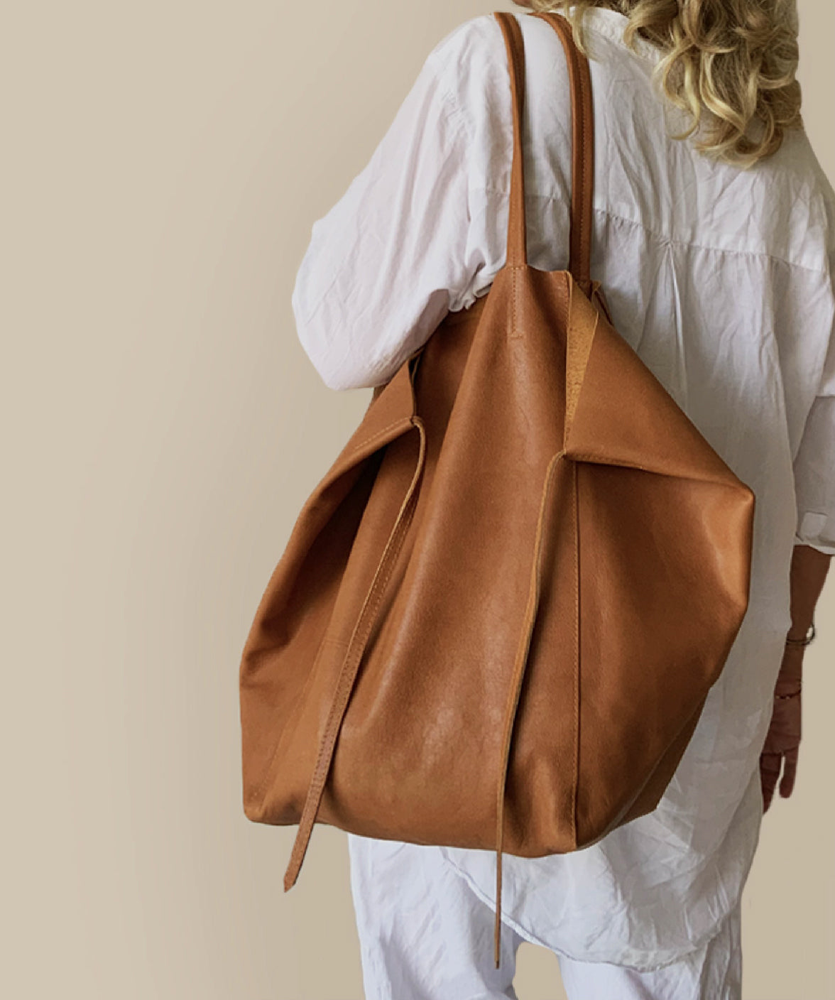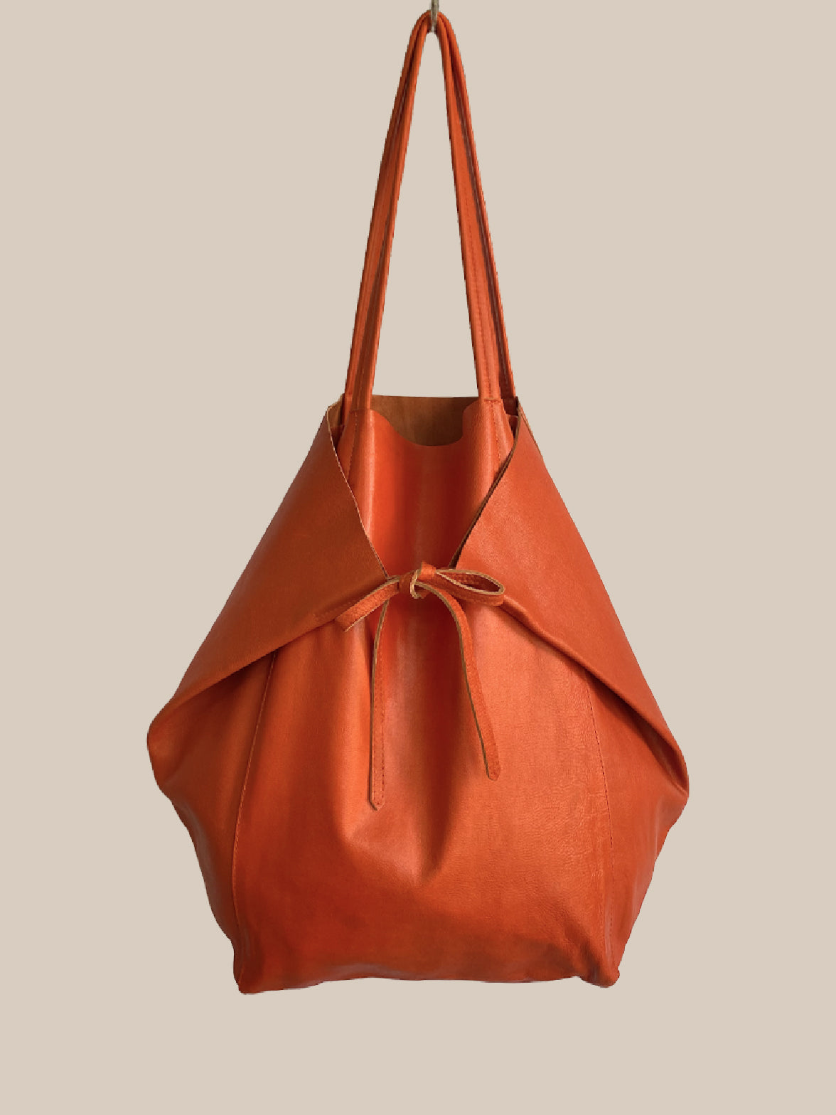 The Pyramid Bag, made from 100% goatskin is our most popular everyday tote - just choose your color or collect them all!